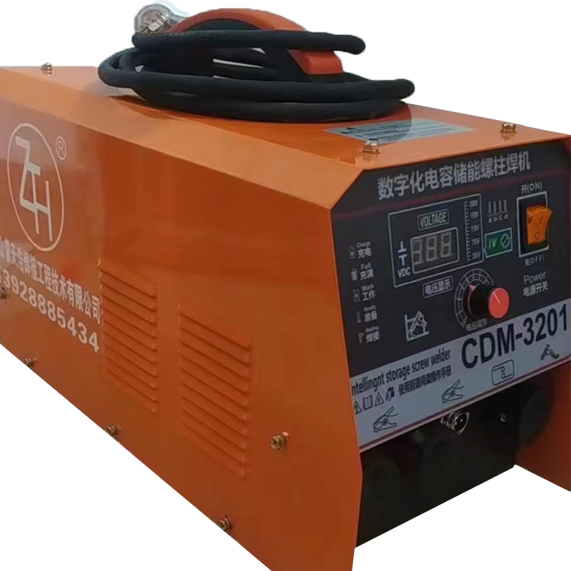 儲(chǔ)能式螺柱焊機(jī)可將螺柱、內(nèi)螺紋螺柱、銷(xiāo)釘?shù)阮?lèi)似的元件焊于金屬工件上。在焊接過(guò)程中,通過(guò)元件尖端放電使儲(chǔ)能電容放電,放電時(shí)間0.001-0.003秒,不需要?dú)怏w或陶瓷環(huán)保護(hù),熔深約0.1MM。